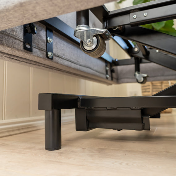In 2022, together with the world leading supplier of electric bed components (OKIN), we were able to design a revolutionary bed frame that can be lowered to just 18cm from the floor level and can elevate to an incredible height of 75cm level and meet OH&S height standard requirements.
