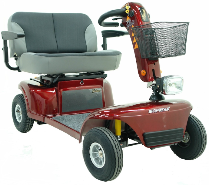 The Shoprider 889D Wide Seat Mobility Scooter is a heavy-duty, four-wheel scooter designed to provide enhanced comfort and support for users requiring a wider seating area. Its robust construction and advanced features make it suitable for both indoor and outdoor use on various terrains.