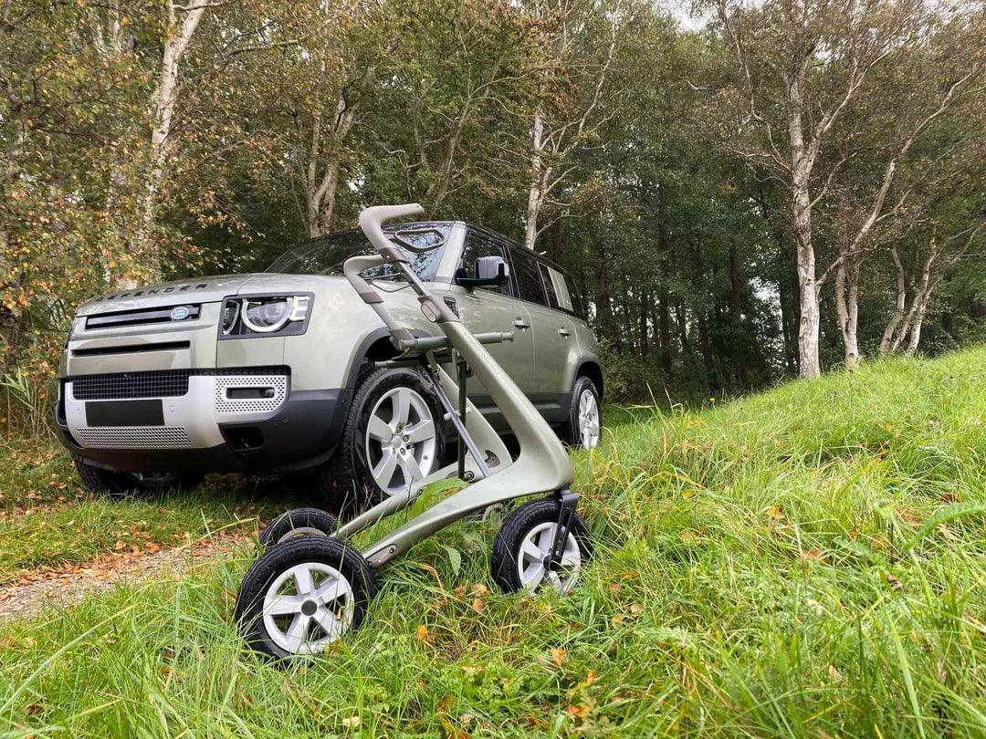 The Overland rollator is made from high-quality carbon fibre, which makes it both lightweight and incredibly strong. This means that the walker can handle rough terrain easier, without the battle of extra weight that would make it more difficult to manoeuvre.