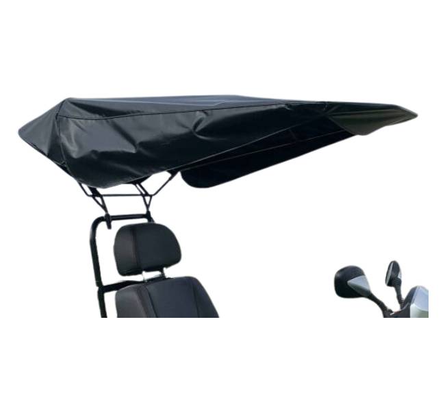 Heavy-duty deluxe canopy for mobility scooters. Protects from the sun and rain, adjustable height, easy install/removal.