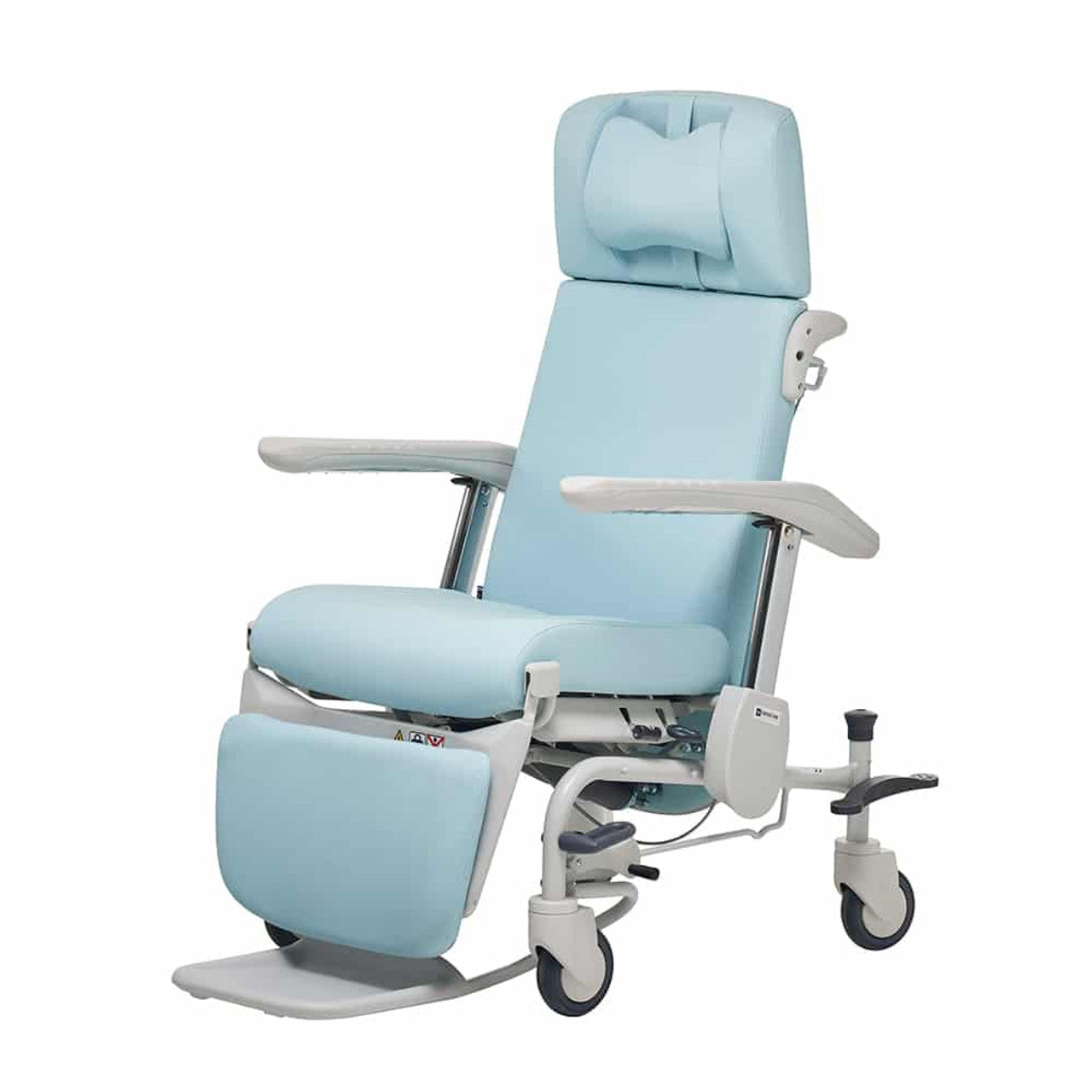 The Gaia chair is a mobile and fixed height medical convalescent chair, remarkable for its high-quality construction and finish, versatility and ergonomics. The backrest and seat have synchronised adjustment, incorporating seat tilt, to deliver terrific patient support, comfort and weight distribution. It is perfectly suited to clinical settings, with careful consideration given to both carer and patient alike, while hygiene and infection control has been considered on all levels.