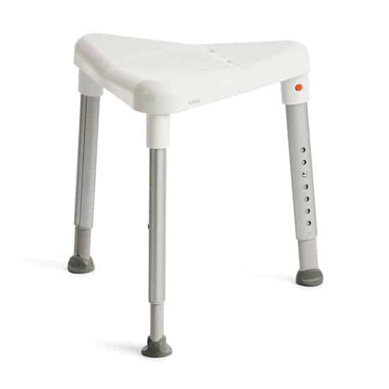 Fits well in smaller spaces or shower corners. Users can straddle the seat for increased stability.