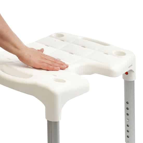 The Etac Swift Shower Chair is designed to provide stability and convenience in the bathroom. Its lightweight yet sturdy construction makes it easy to maneuver, while its height-adjustable feature ensures a comfortable fit for the user. The chair’s telescopic legs are equipped with specially designed soft ferrules that adapt to various floor surfaces, including uneven or wet tiles, ensuring maximum stability and safety.
