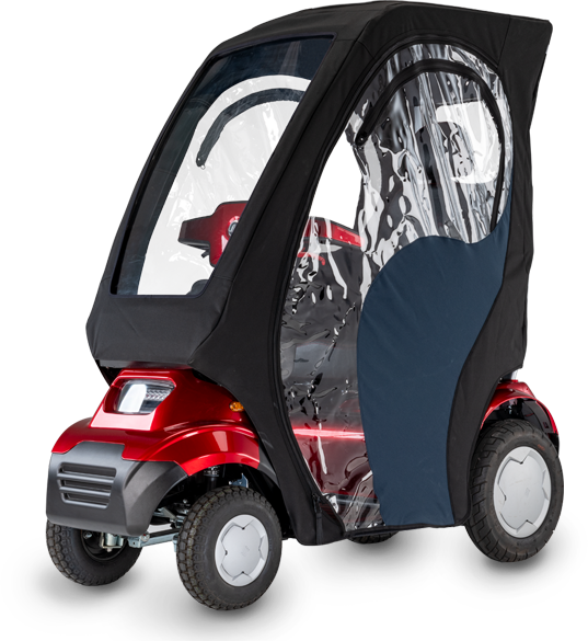 Durable and easy-to-use rain cover for Afiscooter C4 single seat protects you from rain, has a large size for maximum coverage, and clear windows for all-around visibility.
