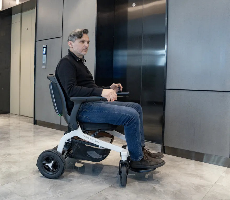 The Robooter E40 is a sleek, foldable electric wheelchair that seamlessly combines performance, portability, and style. Designed for easy daily use with comfortable leg space and a small turning radius, it is powered by a robust 20AH lithium-ion battery, covering an impressive 20Km on a single charge. With smooth maneuverability on various floor surfaces, its lightweight design makes it ideal for transportation in cars, airplanes, and more.