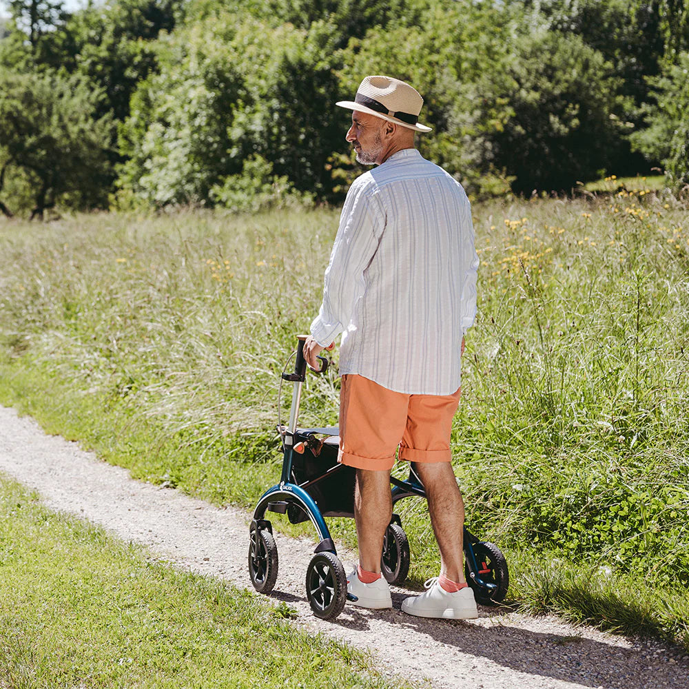 Skin-friendly handles and armrests are made from cork-TPE, which feels natural - shock-absorbing and comfortable. The are also height adjustable with a fantastic range between 81 – 103cm (the highest of all our walkers).