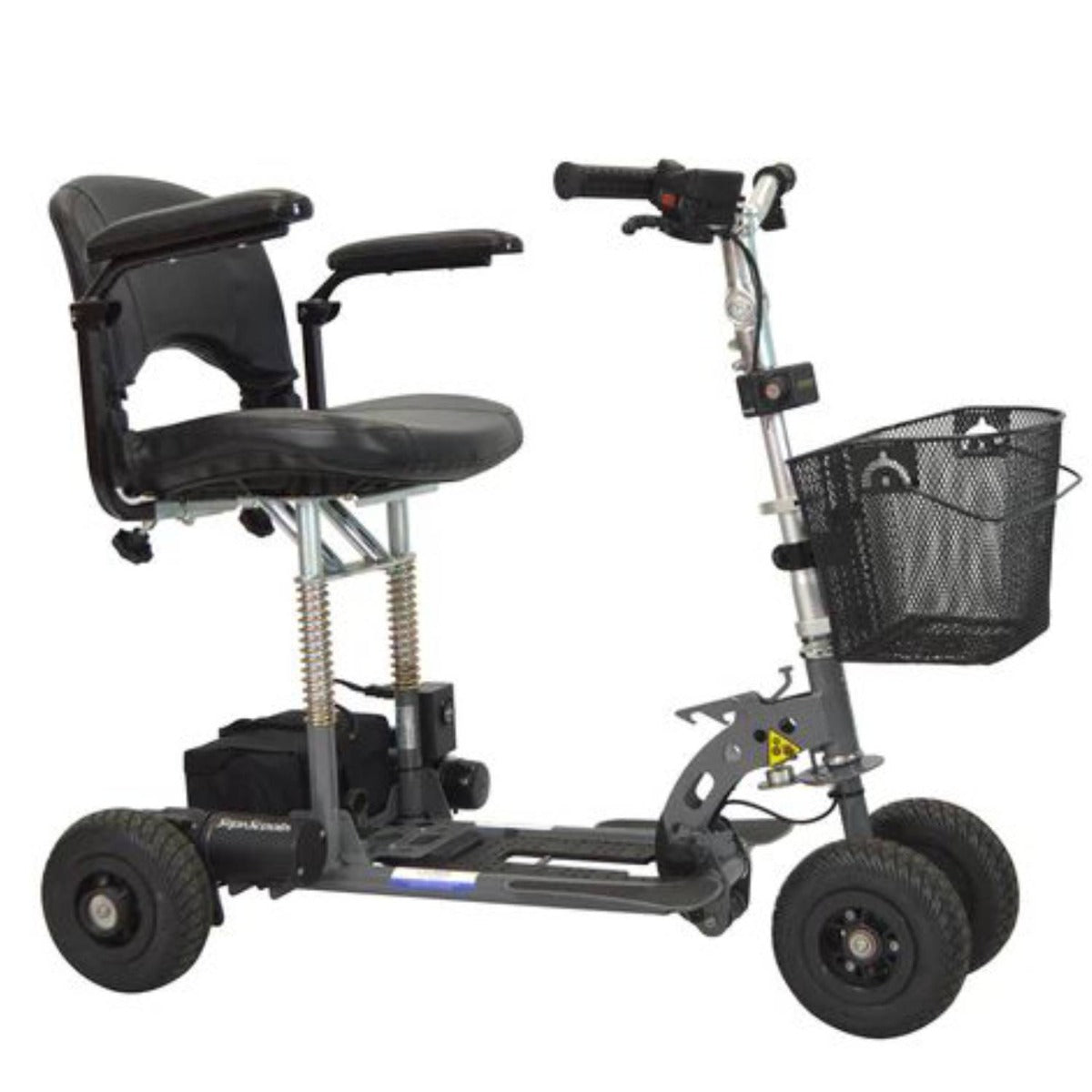 Finally a truly portable scooter with heaps of leg room and a large 130kg load capacity. Long distance travel in complete comfort or confined indoor use, the choice is yours. Dual motor drive system makes light work of off pavement use and steep hills so you can go anywhere with total security and a super light split frame design (heaviest part only 10kg) with seat suspension.